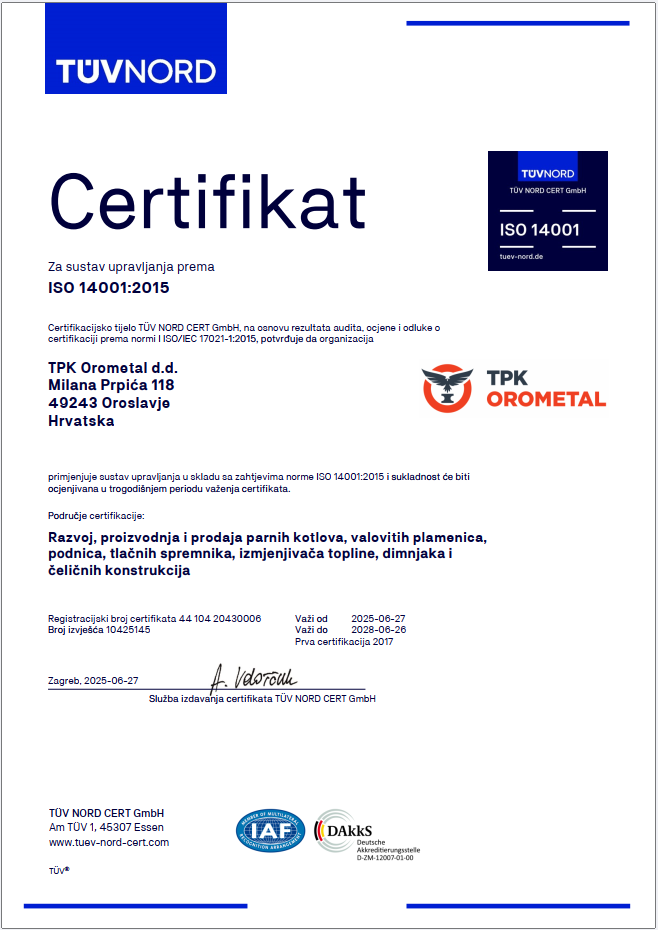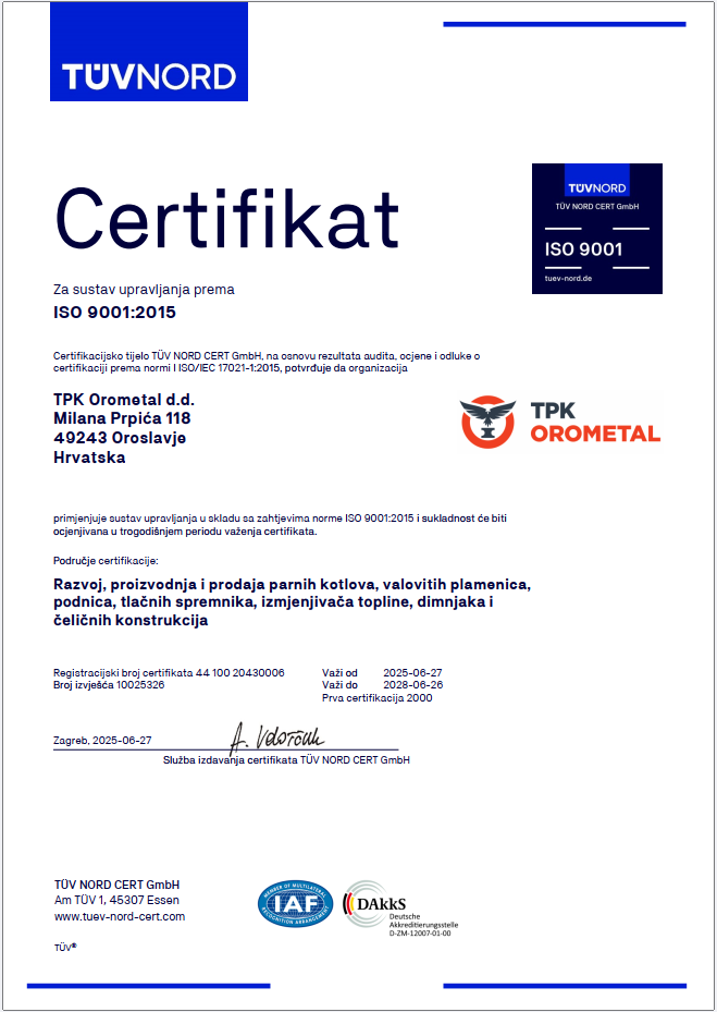 U TPK Orometal provodimo sustavnu kontrolu kvalitete vlastitih proizvoda primjenom NDT metoda na zavarenim spojevima: radiografsko ispitivanje (RT), ultrazvučno ispitivanje (UT), magnetsko ispitivanje (MT), penetrantsko ispitivanje (PT) i vizualna kontrola (VT). Uz to provodimo i ispitivanje debljine stijenki, mjerenje slojeva boje te tlačne probe vodom. Na taj način osiguravamo da svaki proizvod u potpunosti ispunjava zahtjevane tehničke specifikacije i sigurnosne standarde.