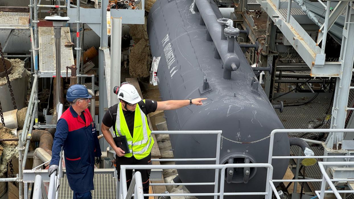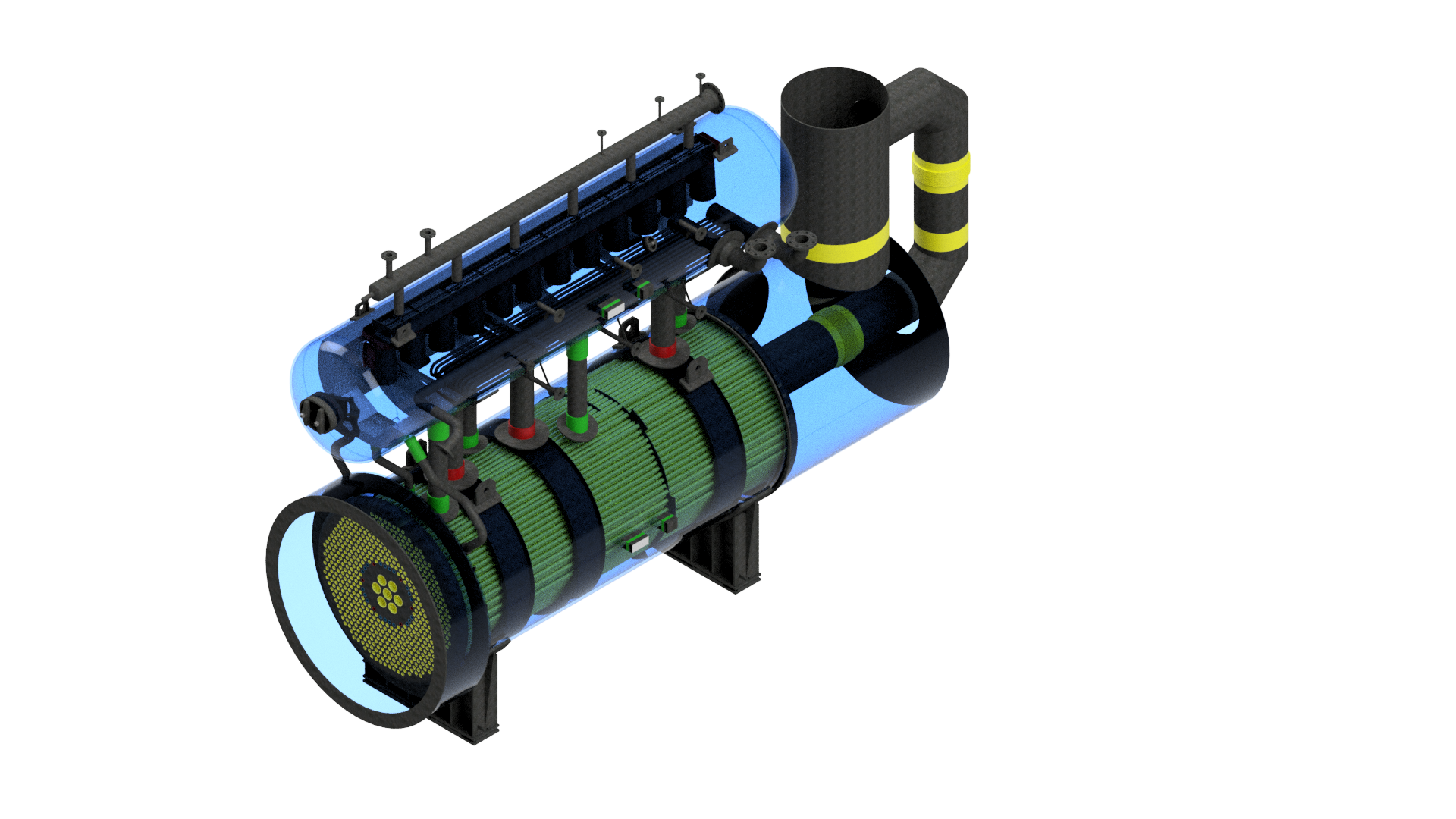 Horizontalni cilindrični parni bubanj promjera Ø1600 mm i duljine 7.625 mm, mase 12 t, opremljen integriranim hladnjakom pare. Izrađen od materijala P355GH i 16Mo3, projektiran za 37 bar(g) i temperature do 390°C.
